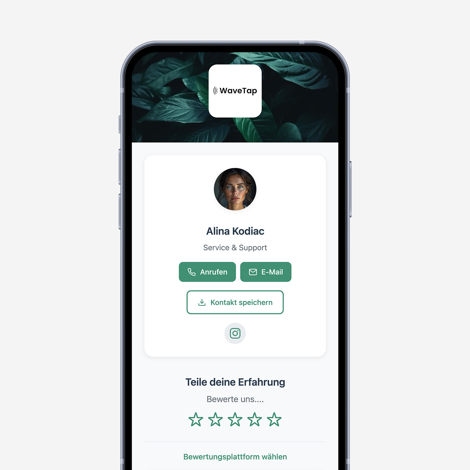 Das Mitarbeiter-Add-on verleiht jeder Karte ein persönliches Profil mit Foto, Kontaktdaten und eigener vCard – ideal für individuelle Kundenansprache.