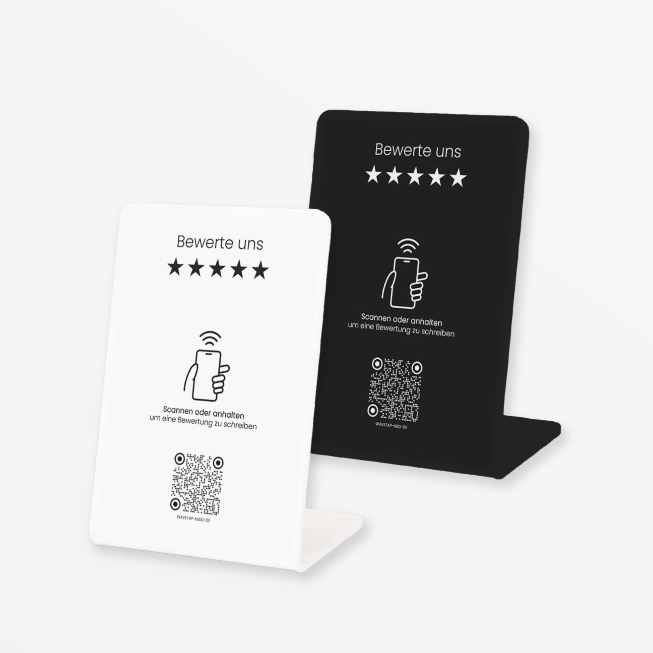 Unser eleganter NFC‑Aufsteller leitet Gäste ohne App direkt zu Ihrer Google‑Bewertungsseite oder einer WaveTap‑SmartPage. Aufstellen, antippen, bewerten – fertig.